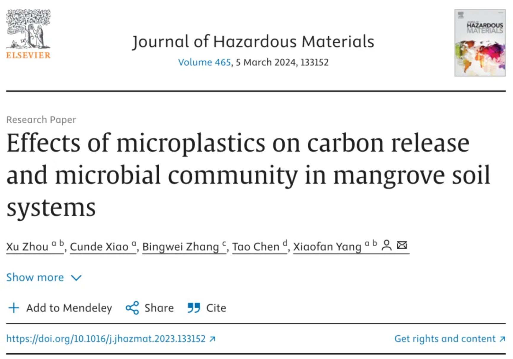 成果速递 | 广东海陆交互带人地耦合系统野外科学观测研究站杨晓帆教授团队在微塑料调控红树林土壤碳循环中取得系列进展