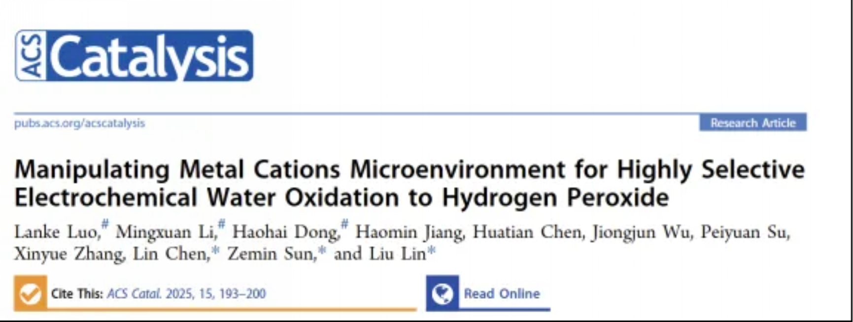 文理学院化学系林柳/孙泽民课题组通过调控金属阳离子的微环境以实现高选择性的电化学水氧化生成过氧化氢,相关成果发表于国际科学期刊ACS Catalysis。