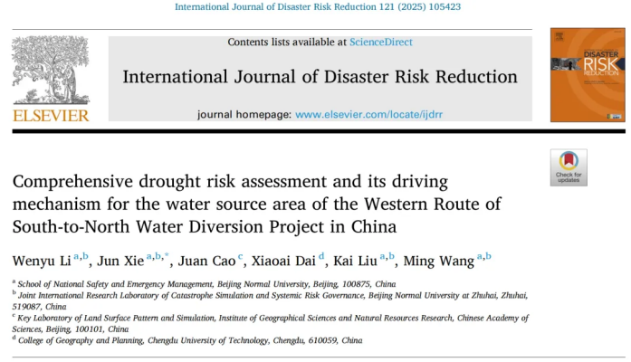 谢军老师团队揭示南水北调西线工程水源区干旱风险演化规律及其驱动机制