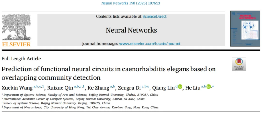 自然科学高等研究院复杂系统国际科学中心、北京师范大学文理学院系统科学系刘鹤研究员团队,联合香港城市大学神经科学系刘强教授,在国际权威期刊Neural Networks上发表题为“Prediction of functional neural circuits in caenorhabditis elegans based on overlapping community detection”的研究论文,成功预测了模式生物秀丽隐杆线虫的关键功能神经环路,为理解大脑工作机制提供了新的理论视角。