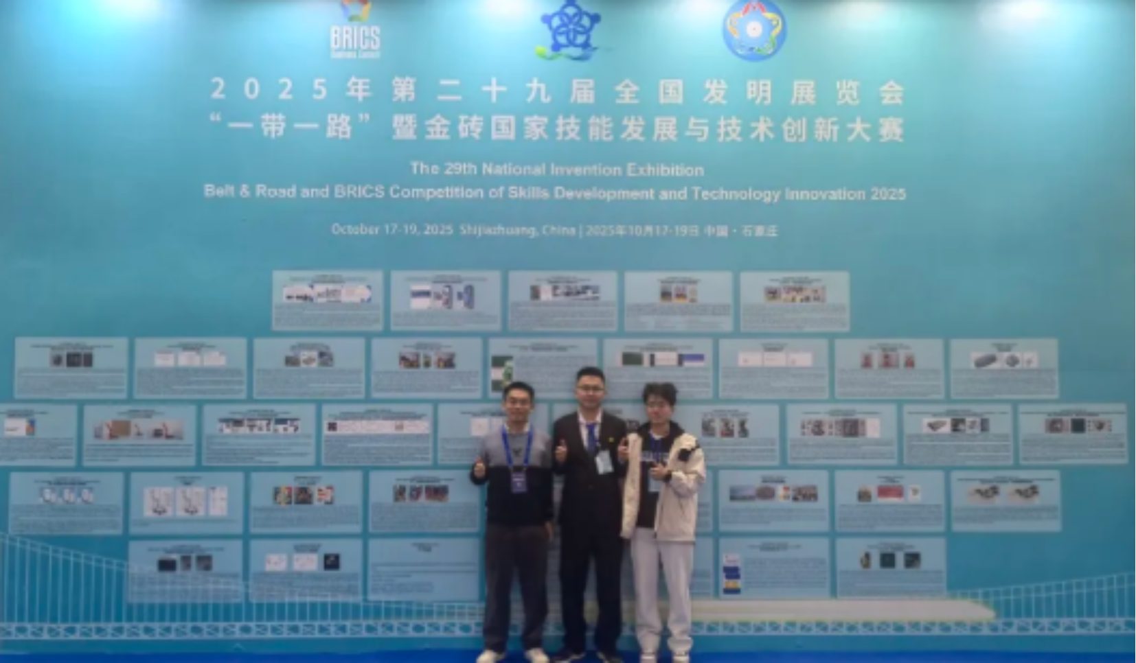 10月17日至19日,由中国发明协会、金砖国家工商理事会中方理事会主办的2025“一带一路”暨金砖国家技能发展与技术创新大赛(石家庄国际赛)圆满举行(以下简称“金砖大赛”)。北京师范大学珠海校区由文理学院化学系郝高丰、陈智聪、王韵杰和郭永清同学组成的团队(指导教师:文理学院化学系杨逸),凭借项目“新型多金属复合碳纳米管净水剂:污水处理工艺的革新引擎”,在“绿色能源”赛道中获得二等奖(银奖)。