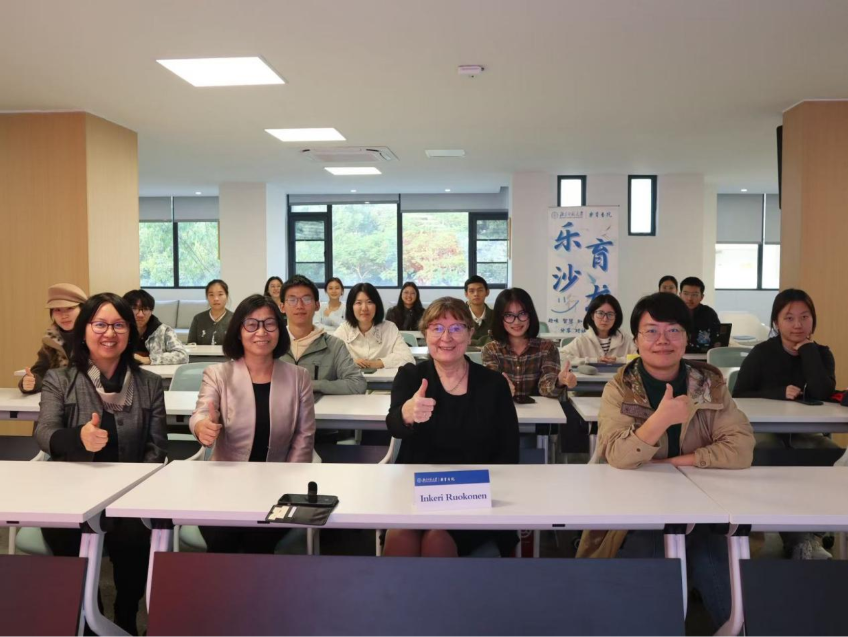 11月21日,作为“多元绽放 青春同行”北京师范大学珠海校区第二届国际文化节的重要组成部分,“感知世界之邀朋至故乡”文化沙龙在北京师范大学珠海校区举行。本次活动由乐育书院承办。受北京师范大学心理学部、中芬联合学习创新研究院邀请,图尔库大学荣誉教授Inkeri Ruokonen担任主讲嘉宾,围绕“芬兰教育特色与未来教师领导力培养”这一主题进行了深度分享。Ruokonen教授的研究领域涵盖幼儿教育、音乐教育、教师教育、艺术教育学、学习环境、早期天赋教育、跨文化教育及创造力等。