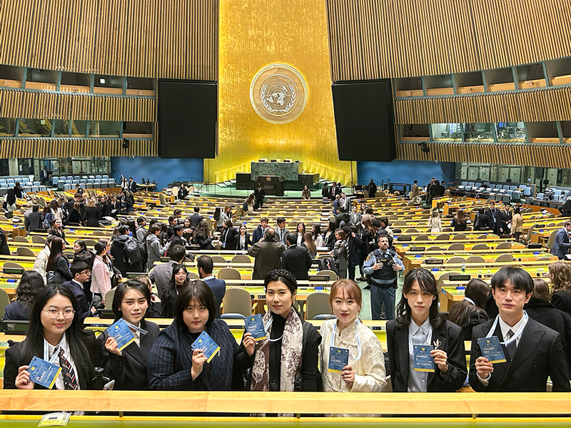 2025年2月3日至6日,由联合国协会世界联合会(WFUNA)主办的“国际模拟联合国大会”在纽约举行,主题为“携手共创可持续未来”。北京师范大学未来设计学院学生李彦慧、陈荷佳、吴奕璇、方一羽和文理学院学生张洁在未来设计学院教师周天歌、钟旭的带领下参会,与全球80多个国家的1500名青年代表共议全球治理方案。