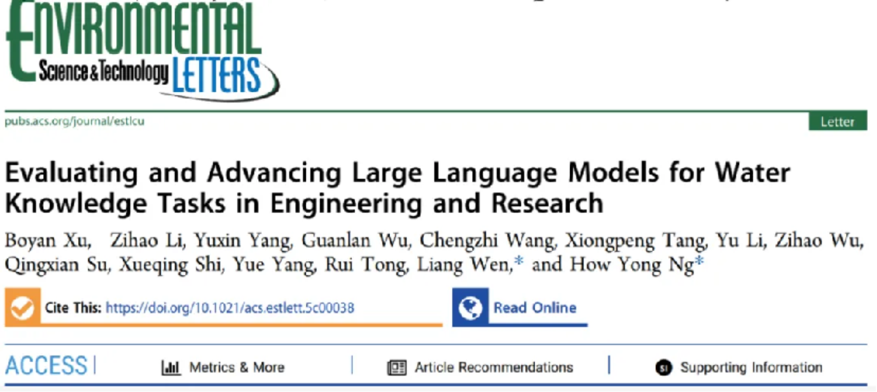 成果速递 | 北师大科研团队ES&T Letters:大语言模型在水工程研究知识任务中的测评与性能提升策略初探